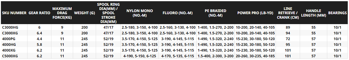 - 5000+ Monster level freshwater, Heavy saltwater, surf, big game