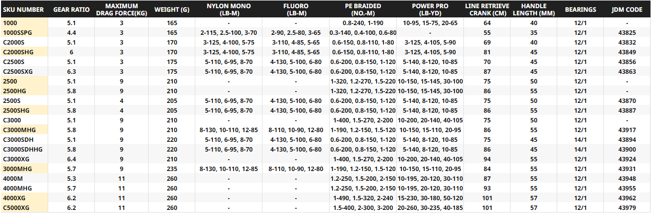 - 4000: Large jerkbaits, 3/4oz crankbaits, chatterbaits, large topwaters, inshore swimbaits, spinnerbaits